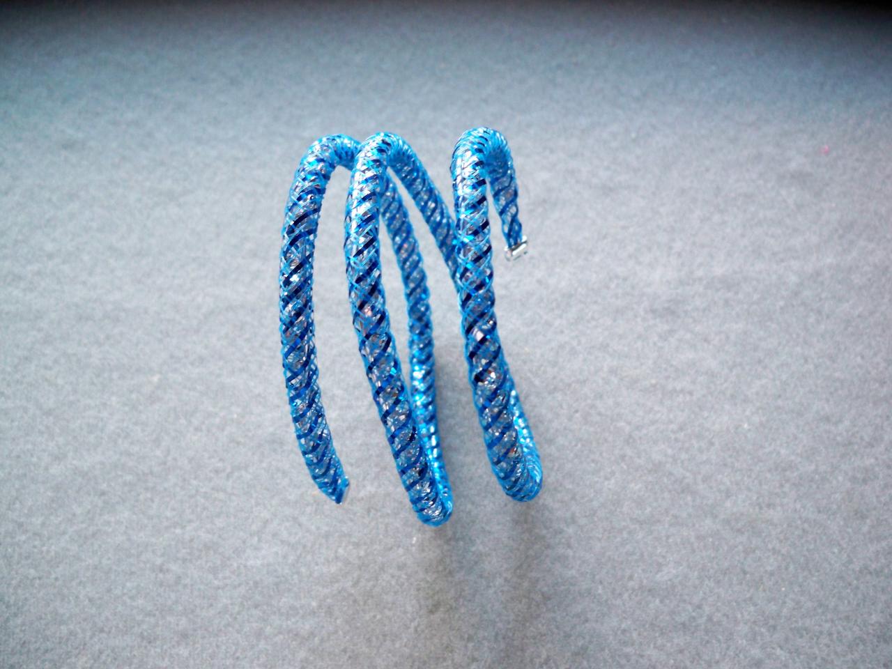 Bracelet flexible 3 tours résille filetée bleu dur et strass ; 8€