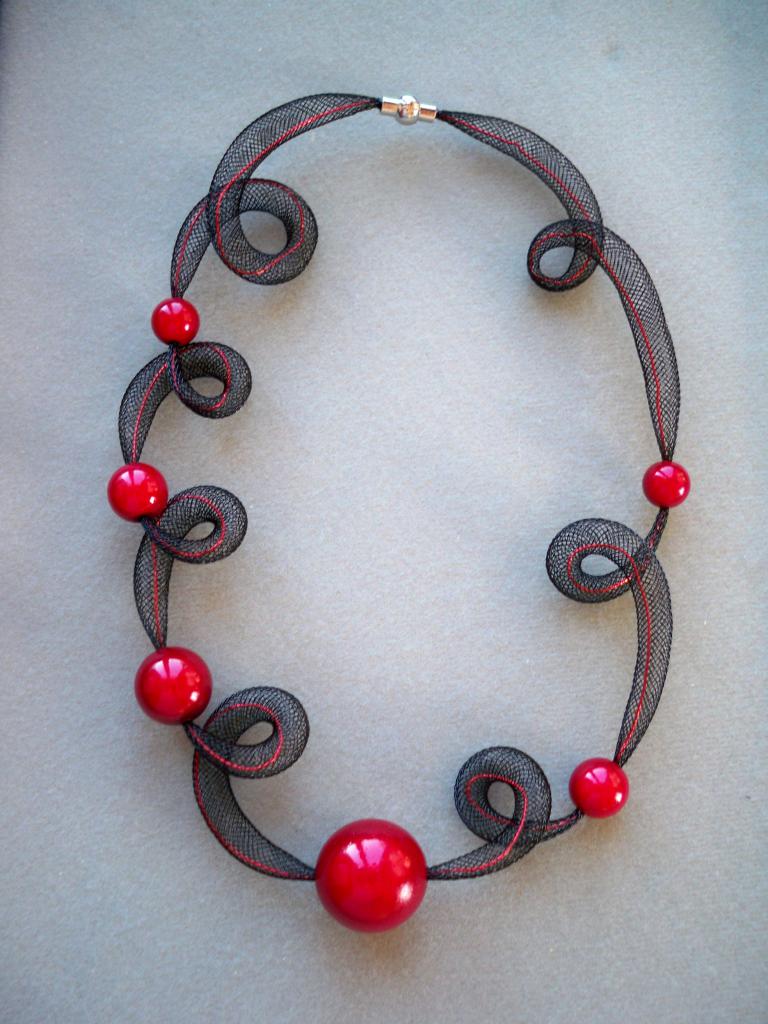Collier résille tortillon et perles magiques rouges ; 18 €